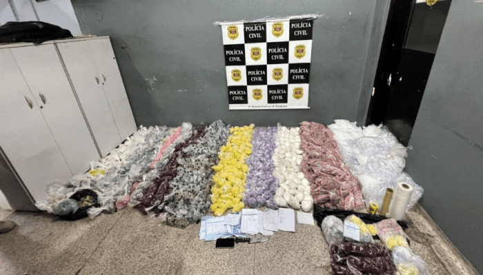 Durante a abordagem, o suspeito, identificado como A.C.C.D.S., admitiu informalmente que havia mais drogas em um apartamento. No local indicado, os policiais localizaram: